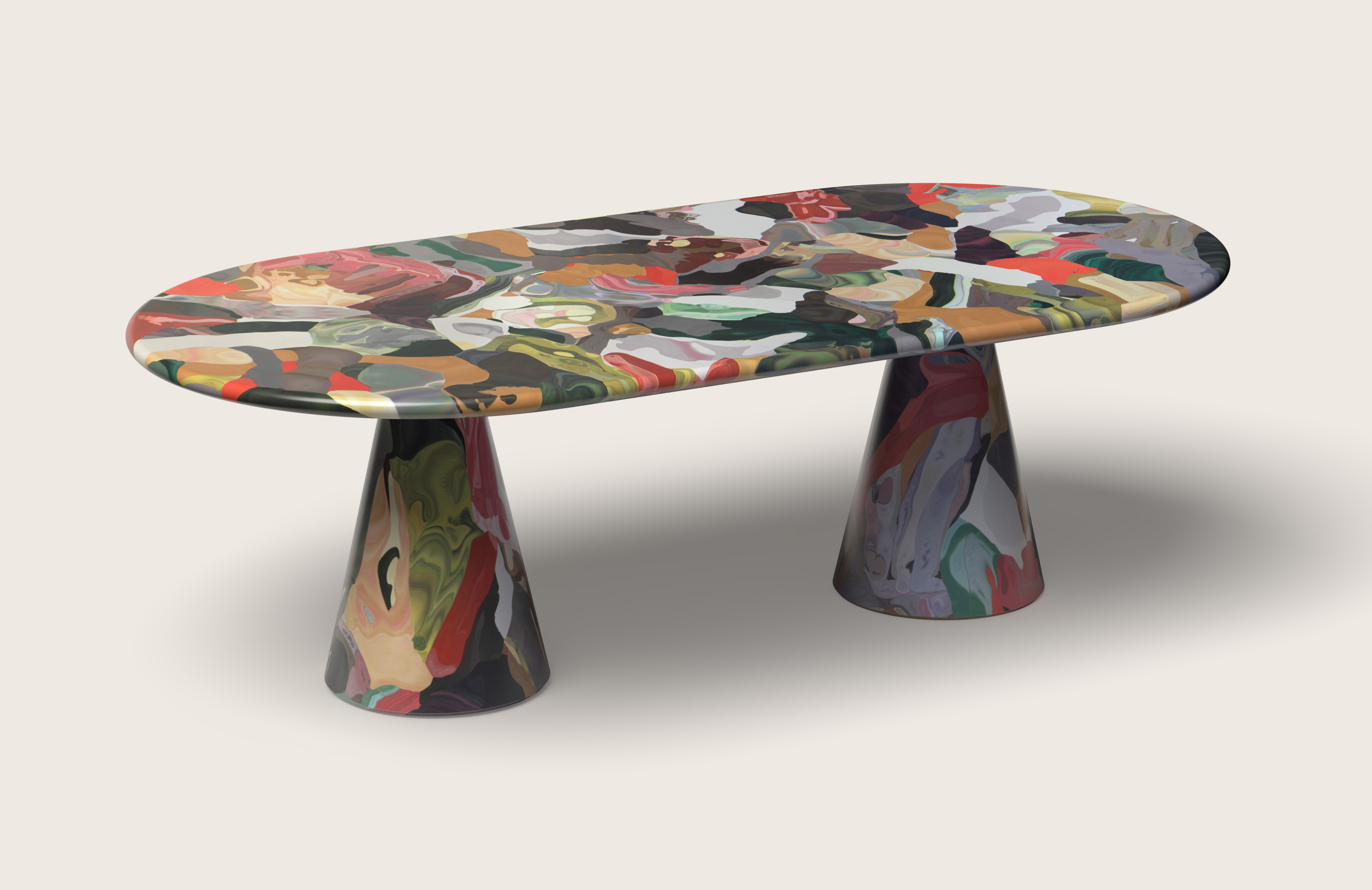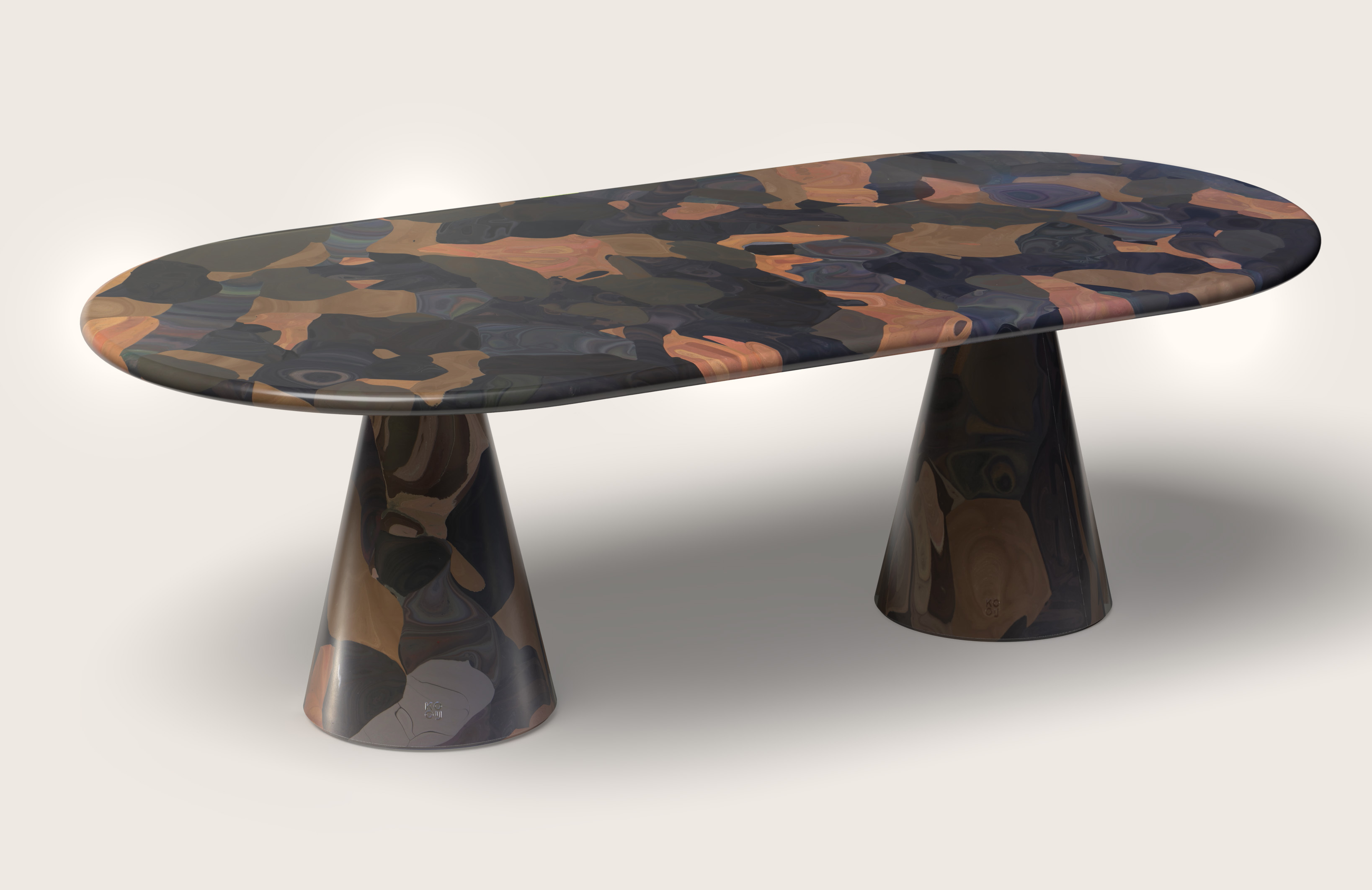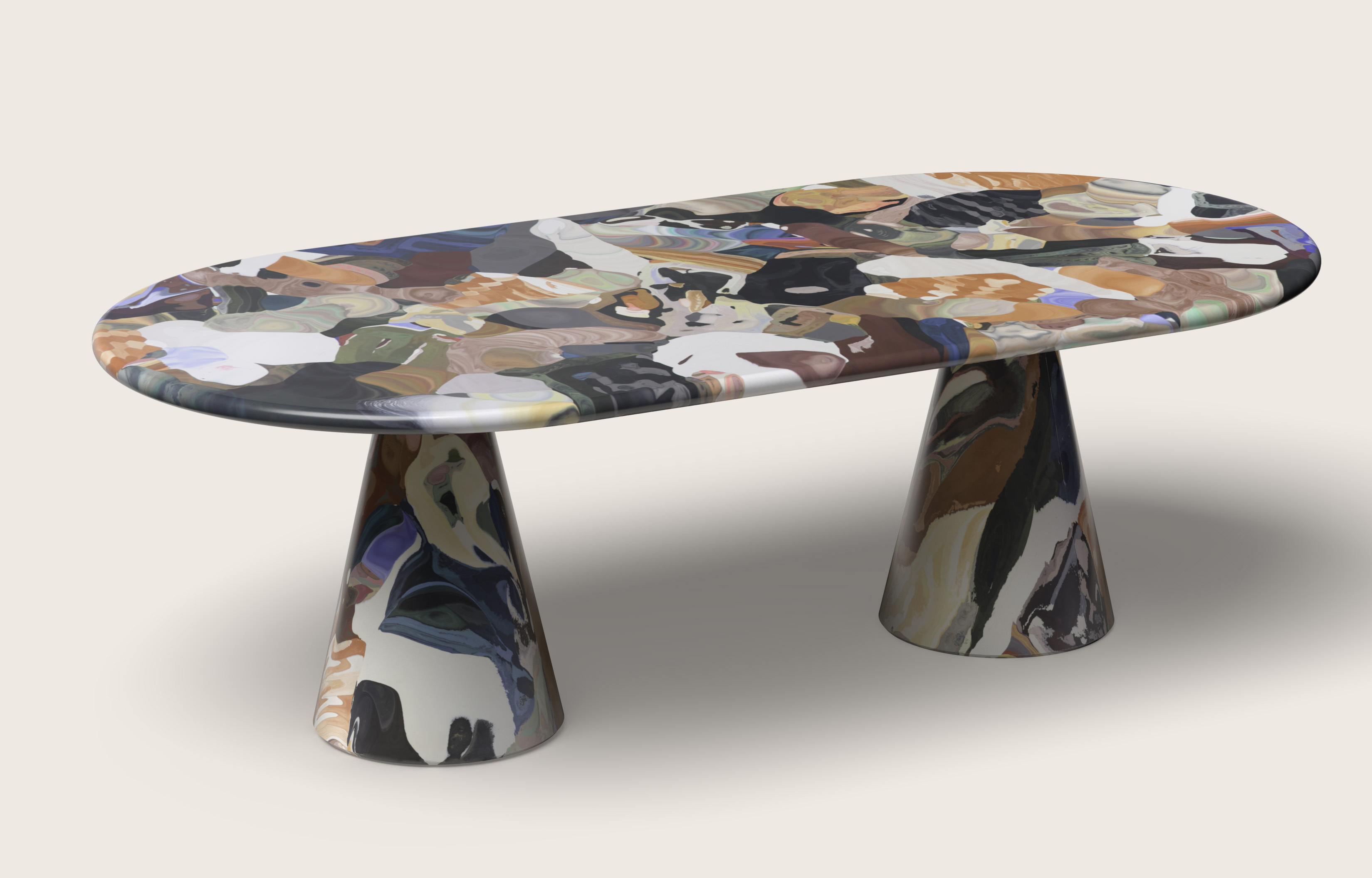 Dirk van der Kooij, 2014 Measuring 240cm in length, the 8-persons Meltingpot tabletop is the largest tabletop to be pressed from a single sheet. It’s seamless, unbroken patterning is richly immersive & organic. The double leg design speaks to durability and trustworthiness—destined to be a multi-generational object. |
